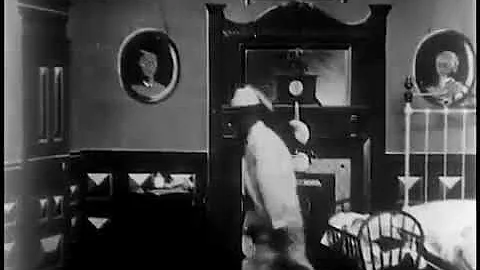 A severe Mrs. Nation enters the room, catching her husband taking a swig of whiskey. Outraged, she smacks him, and then pulls him over her knee to administer a humiliating spanking.